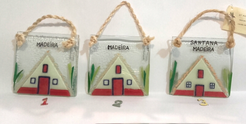 Casinha típica da Madeira -Santana-, um ex-líbris do concelho de Santana e um cartaz turístico da ilha da Madeira. Estas casas têm uma forma triangular e são revestidas de colmo.