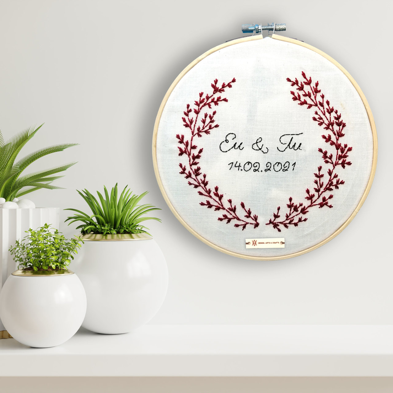 Bordados de celebração de Amor. Ideal para aniversários, datas especiais, casamentos, dia dos namorados. Personalizável: palavras, frases, datas, cores usadas. Na compra de 4 bordados desconto de 10% no valor total. O bastidor ou moldura está incluído no valor (por favor diga-nos o que prefere na altura da compra). Enviamos por CTT para Portugal e Estrangeiro, acresce valor de envio