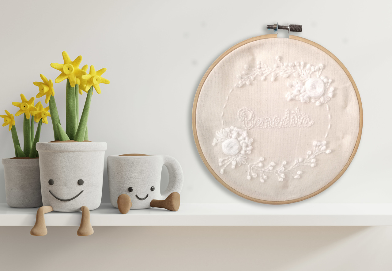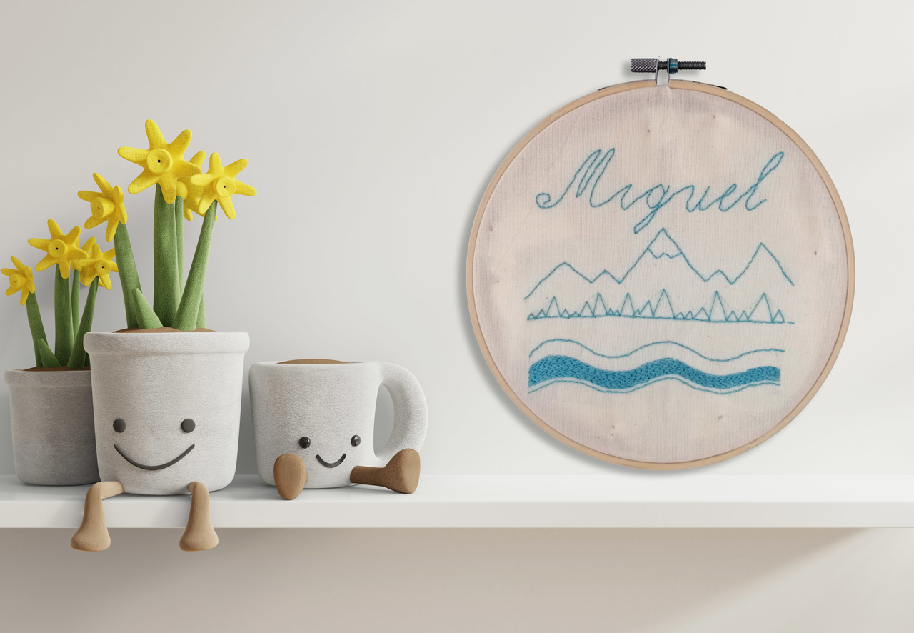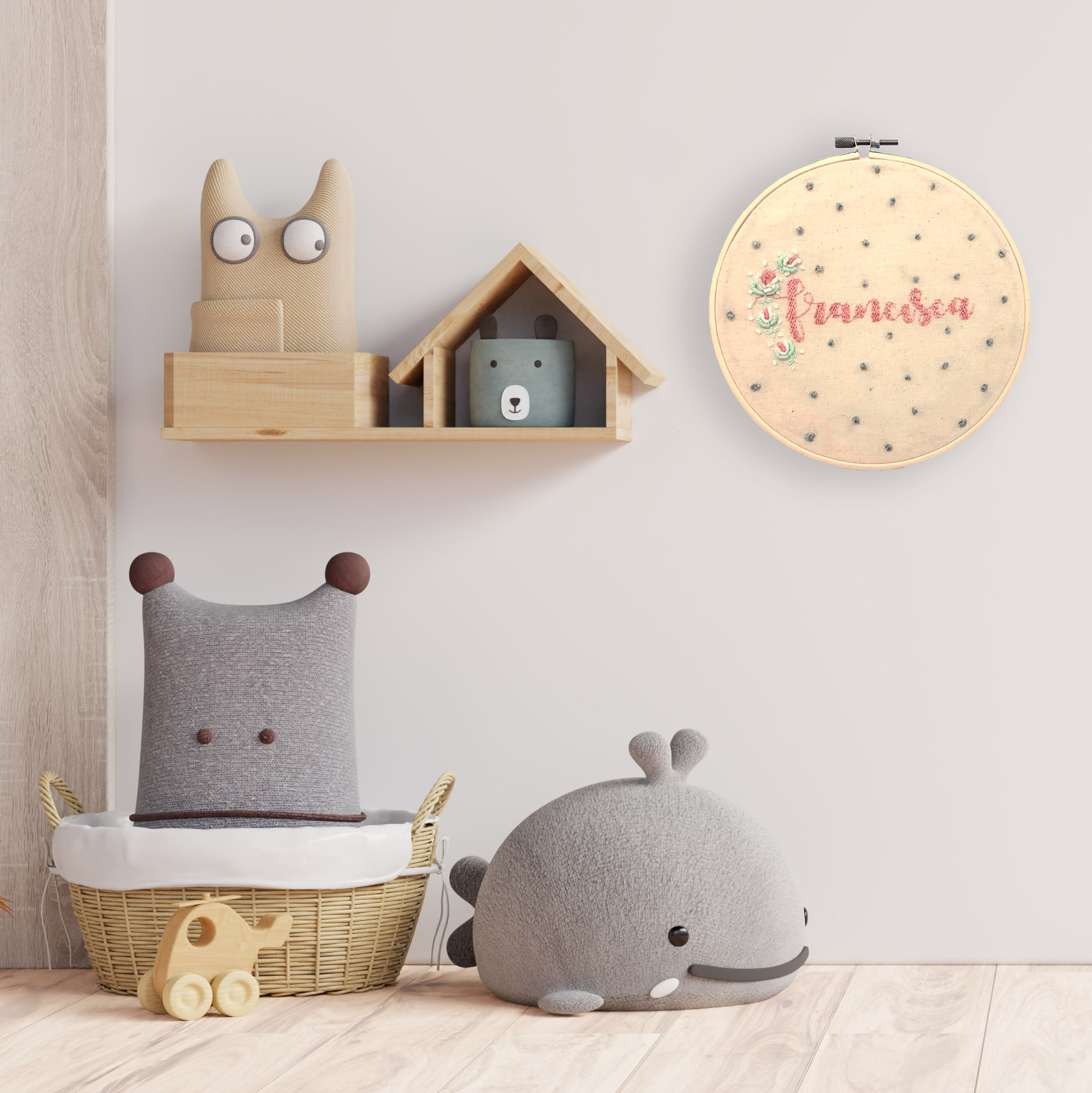 Bordados com nome de criança ou bebé. Personalizável: Nome, Cor usada no bordado. O bastidor ou moldura está incluído no valor (por favor diga-nos o que prefere na altura da compra). Enviamos por CTT para Portugal e Estrangeiro, acresce valor de envio