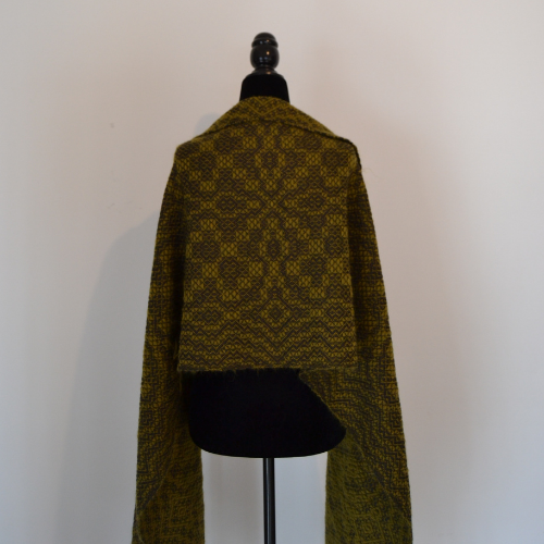 da peça apresenta um padrão diferente, sobrassaindo de um lado uma côr e do outro a outra. É uma peça única, tecida por mim