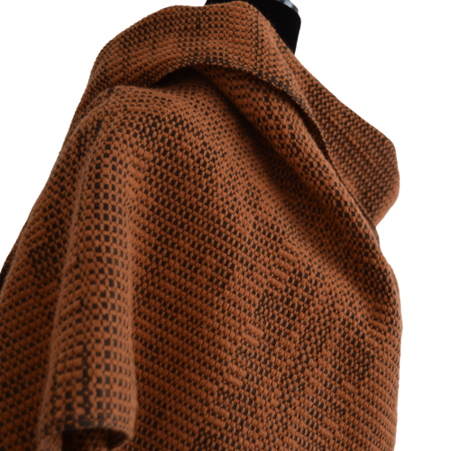 da peça apresenta um padrão diferente, sobrassaindo de um lado uma côr e do outro a outra. É uma peça única, tecida por mim