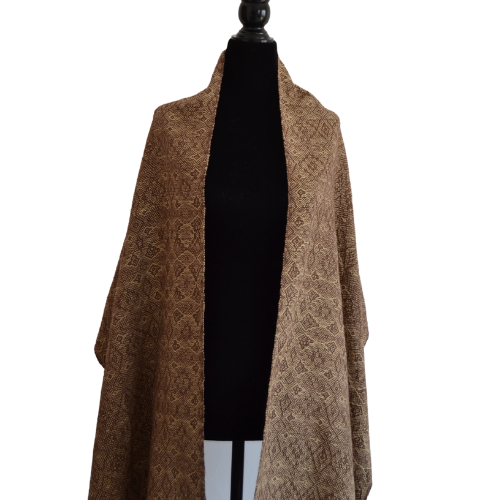 apresenta um padrão diferente, sobrassaindo de um lado uma côr e do outro a outra. É uma peça única, tecida por mim
