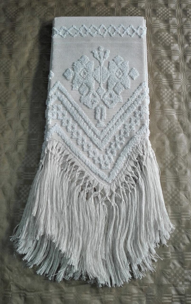 Toalha de rosto feita em tear manual puxados. Franja de linho em bico feita à mão. Ideal para decoração da sua mesa ou casa de banho. Medidas: Largura 55 cm, Comprimento 120 cm. Composição: 60% Linho 40% Algodão